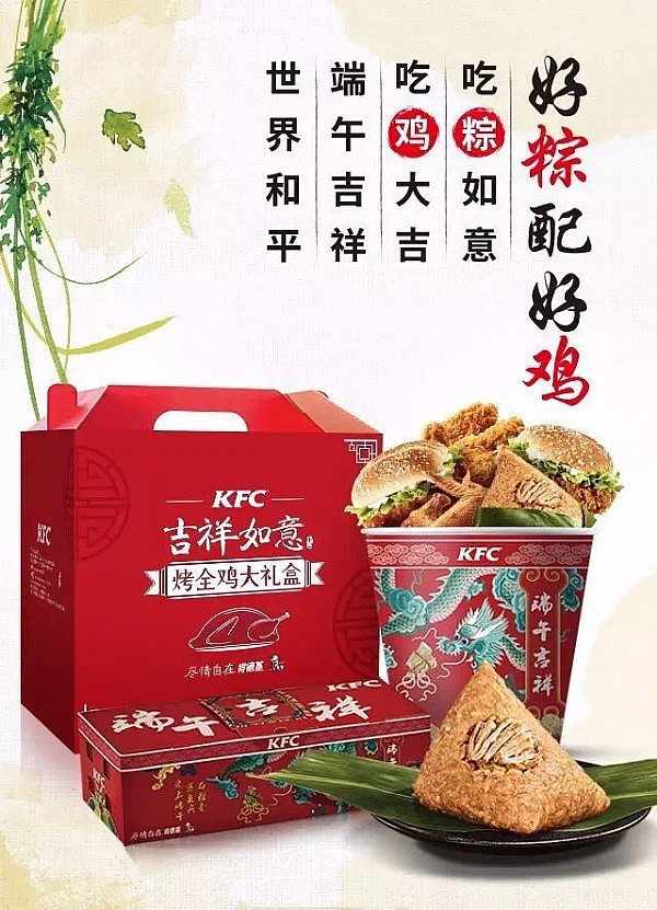 而传统的中国节日肯德基也是毫不放过,曾推出过端午粽子和鸡肉月饼。
