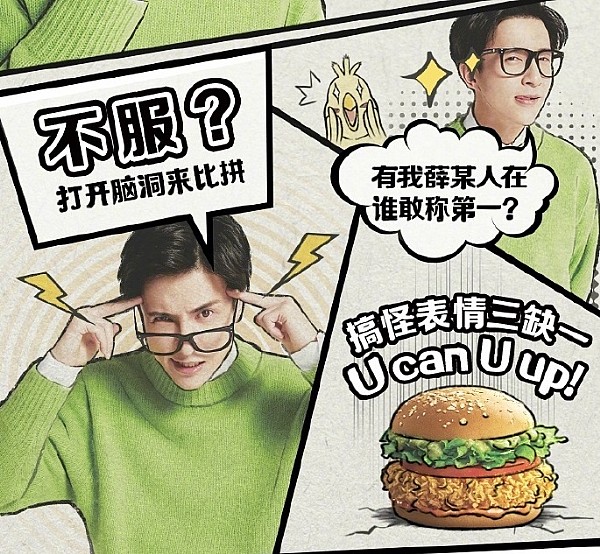 取而代之的,是肯德基在 2017 年引入的、风格更为幽默个性的薛之谦,他为这个老洋快餐品牌带来一丝搞怪感。