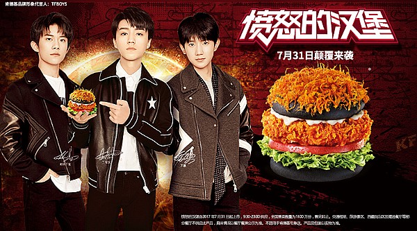 眼看着自己拿手领域被麦当劳侵蚀,肯德基不得不提前宣布,自己已经将可能是中国最具人气的偶像组合 TFBOYS 纳入代言之列,并且将和 TFBOYS 接下来演唱会等活动进行关联宣传。