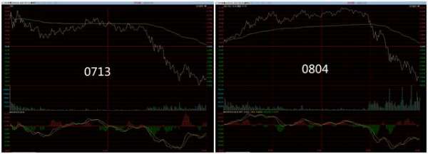 上周五上午煤炭炸板之后就再也没有封板意图,看跌苗头之一;午后章源钨业炸板,看跌苗头二;方大炭素跳水,正式解开上周五0804大跌序幕。