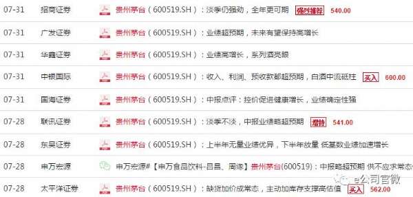 市场也纷纷给出贵州茅台更高的预期,7月28日以来已经有4家券商给予贵州茅台强烈推荐或增持买入评级,并且预计最高股价已经达到600元。