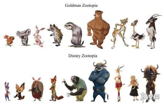 戈德曼版本《疯狂动物城》与迪士尼版的角色设计对比图