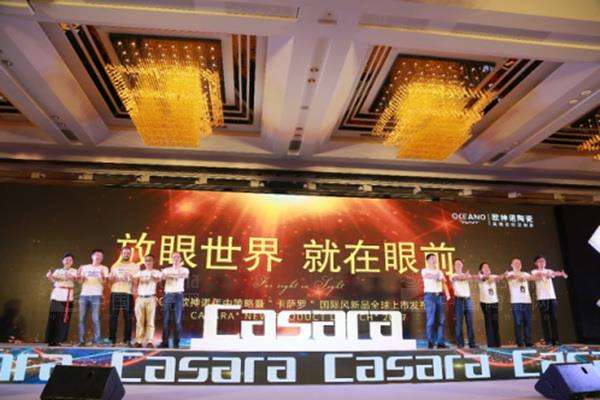 \u00A0 \u00A0 中国陶瓷网讯 8月8日,“放眼世界 就在眼前”欧神诺2017年中策略暨国际风“Casara”(卡萨罗)全球上市发布会在佛山希尔顿大酒店盛大召开。欧神诺陶瓷董事长鲍杰军、总裁陈家旺,50多位卡萨罗Casara全球创意者、30多家媒体记者、全国近1000名经销商共赴盛会,共襄盛举。