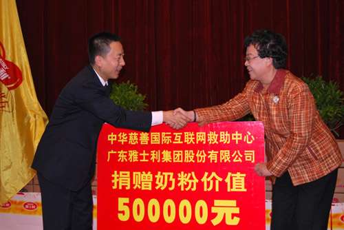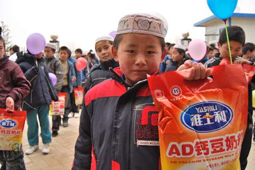 仪式上,雅士利公益负责人张培喜说:我们跟甘肃是有深厚感情的,去年,我国发生了震惊世界的汶川特大地震,我们在第一时间,捐款捐物350万元,其中将价值50万元的婴幼儿奶粉紧急送到了甘肃的陇南,当我们到达陇南的时候,我们的心被一次次撼动。以后,我们肯定会更多地给甘肃送来物质上的祝福。