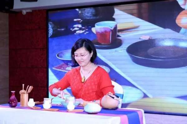 王爱女士上台为大家分享、讲解茶艺