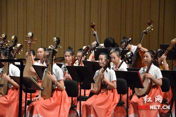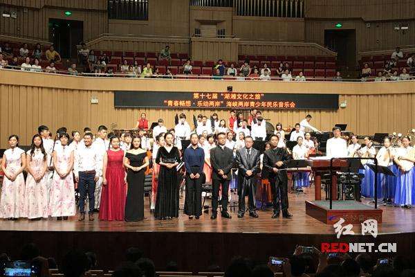 音乐会上,台湾先啬宫青少年民乐团演奏的《新龙舞》展现了华夏子孙作为“龙的传人”的自豪;上海金山区学生民乐团带来的《台湾追想曲》承载着海峡两岸的深情和友谊;湖南师大附中民乐团演奏了《庆典序曲》《老司城随想曲》等,用音乐展示湖南的民族风情、悠久历史、热情好客。两岸青少年还合奏了《花好月圆》和《浏阳河》。