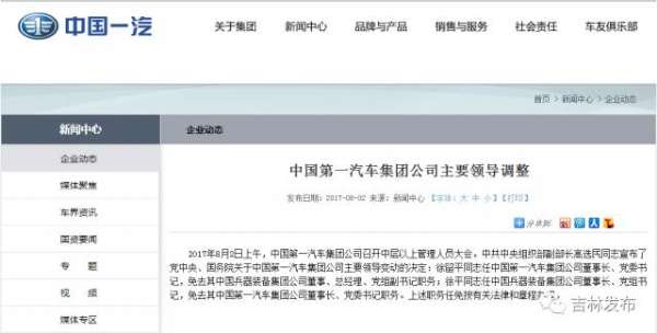 8月2日上午,中国第一汽车集团公司召开中层以上管理人员大会。