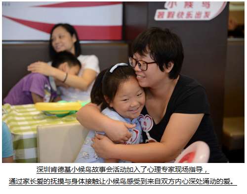 今年暑假,深圳肯德基为小候鸟群体准备了四场从“心”出发的故事会,通过小候鸟故事会亲子阅读的形式以及心理学专家在亲子沟通上的指导,把“小候鸟”们与家长之间由于物理距离而产生的心理距离有意识的“缩短”,从而帮助小候鸟群体在未来的生活中可以更加健康茁壮的成长。