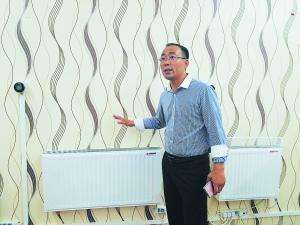 圣火集团董事长王丰在新型散热器前介绍采暖发展趋势