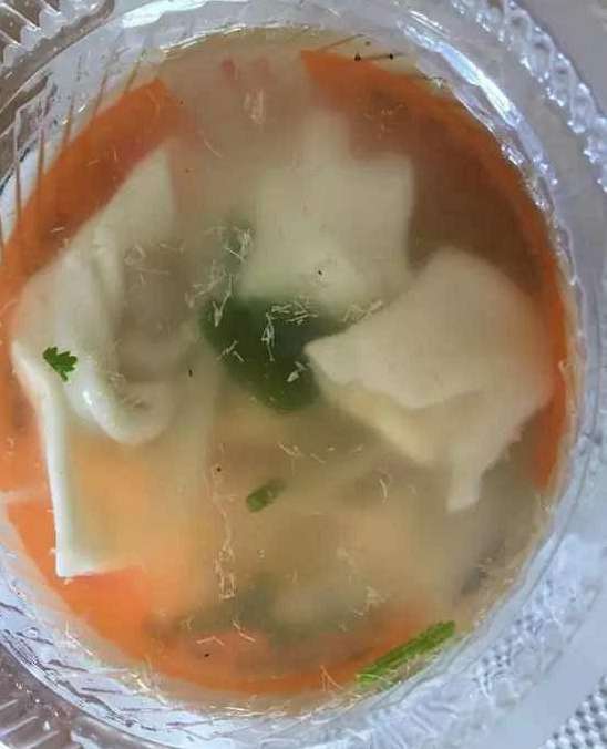 8月5日上午,网友“香菜”发微博称,自己在庆丰买的外卖馄饨,汤里面飘着白色的像“虫卵”的东西。而在该网友提供的图片中也显示,一白色塑料碗的混沌中,确实漂浮着许多白点状物质。随后,北京庆丰包子铺有限公司,该公司发声明称:“经公司初步了解和检查,小白点儿是制作混沌汤料加入的原材料虾米的虾须。”