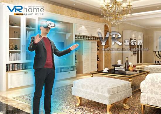 此外,欧派衣柜打造的情景化平台型终端,其中包括720°全景效果图展示。相对普通平面设计图,720°全景效果图,可无死角“预览”你未来的新家,大到空间布局,小到饰品搭配。只要戴上VR眼镜,用户在装修前就能“走进”自己的新家,所见即所得,真正兑现用户对家的期许。