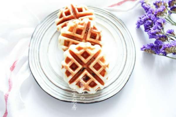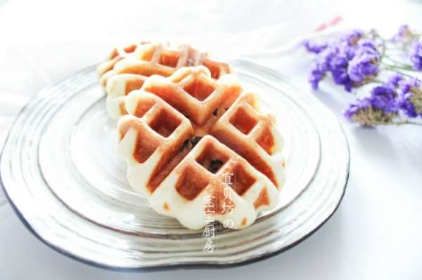 格子饼,源于比利时,用专用的烤盘烤制。常见的一口香小蛋糕以及香港的鸡蛋仔都属于华夫饼的改版。这款用酵母的华夫饼,口感很像小面包~~