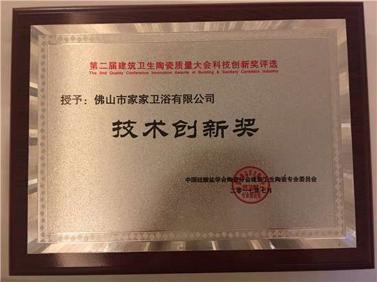 据了解,此届年会围绕建筑卫生陶瓷国抽质量分析、最新标准解读、绿色建材前沿技术介绍、绿色建筑中的建材应用、精装房选材要求、智能市场现状与前瞻、建材质量电商监管等核心内容进行深度研讨,为广大行业人士提供形式多样的学术交流平台,旨在总结和交流建筑卫生陶瓷质量状况及最新技术成果,同时会议将对为推进行业发展做出突出贡献的企业进行表彰,以促进建筑卫生陶瓷行业的持续健康发展和制造技术的不断进步。通过层层筛选,浪鲸卫浴(佛山市家家卫浴有限公司)凭借优秀的技术改造被授予“技术创新奖”荣誉。