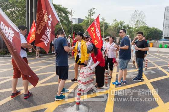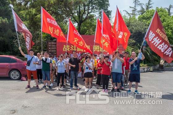 徒步前的旗帜准备 徒步前的热身与动员 徒步前为了增强大家的信心开展的小游戏 赵总为大家讲解安全防范措施 徒步前领取矿泉水以防中暑