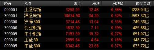 沪深两市午间收盘,上证综指收报3,258.91点,上涨12.46点,涨幅0.38%,成交额1,288亿元;深证成指收报10,634.98点,上涨34.2点,涨幅0.32%,成交额1,593亿元;创业板指收报1,832.3点,上涨7.11点,涨幅0.39%,成交额485亿元。资金方面,央行公开市场将进行600亿元7天期逆回购操作,400亿元14天期逆回购操作。央行公开市场今日将有500亿逆回购到期。