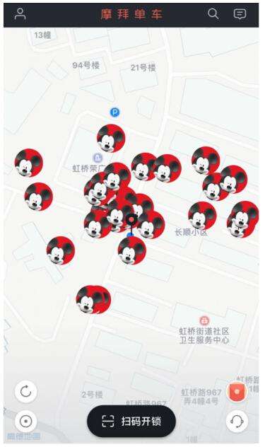 “米奇车”、“米妮车”两款情侣单车高颜值的造型,俏皮灵动的可爱表情随着车轮转动。此外,这两款定制车型在细节上优化了骑行体验,车头车尾米奇头像的反光片闪烁光芒,为夜间骑车骑到了安全警示和保障作用。在摩拜单车APP上可以看到米奇米妮的头像,更加方便寻找车辆。