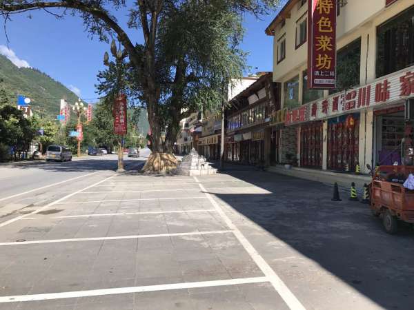 这家餐厅所在的区域是九寨沟景区外最繁华路段, 上百家餐厅、超市、宾馆沿着301国道一一排开,从景区沟口贯连到九寨沟千古情的表演场馆,旺季时,上万游客在这里观看表演,随后流入到整条大街,但如今,只能看到徐贤翠的蒸笼孤零零的在人行道一侧冒着白烟 。