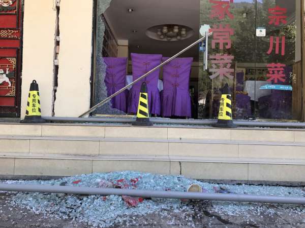 (地震中受损的餐厅 )
