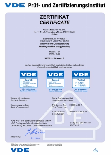 2016年6月,素有电气界“诺贝尔”奖之称的VDE将“水魔方高效节能”技术认证和“BLDC电机20年使用寿命”品质认证颁发给小天鹅,足以证明小天鹅在技术领域的强势地位。