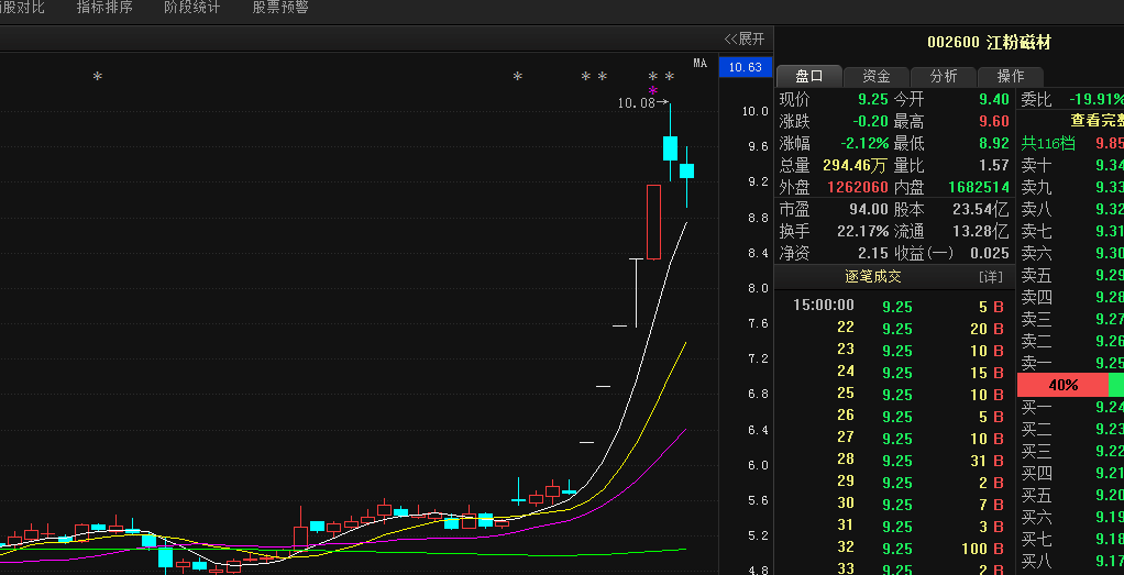 江粉磁材本人在9号用形态选股在专栏中进行了讲解,可以看到当天股价呈十字星企稳信号,股价下跌,量能在放大,说明主力资金是持续流入的,讲解之后短短5个交易日就接近61个点的收益,也就是说只要你在8月9号有看到本人的专栏,并且学会了这种形态选股,那么截止目前短短5个周期的时间,61%的收益是不是到手了呢?当然,现在还不是本人专栏中粉丝的朋友,收不到这样的消息,或者你看到了没有去重视,也是白白的错过了这样的一个机会。专栏获取通道:杨霄微信:snn88521 QQ\u00A03004625372\u00A0(免费)