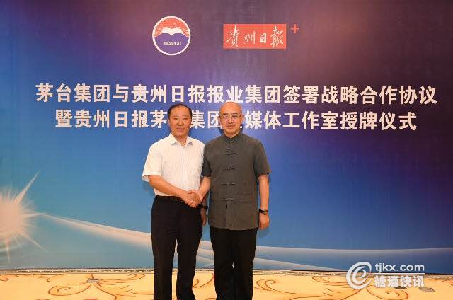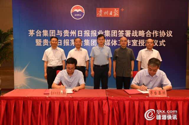 8月20日上午11时,在美丽的赤水河畔,贵州茅台集团与贵州日报报业集团成功“握手”,签署战略合作协议。“贵州日报茅台集团全媒体工作室”挂牌成立。