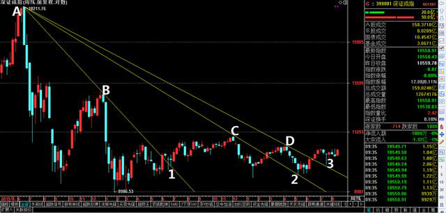 5178下跌以来,深指可以画出三条明显的下降趋势线,突破后都出现了回踩后的向上。现在正好是第三条趋势被突破且回踩后的上涨中。