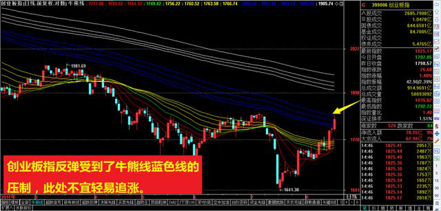 创业板指等板块现在受到了牛熊线白色线的压制,次新股则是受到了牛熊线黄色线的压制,一旦出现无力突破的明显特征,就要及时把握高抛机会。
