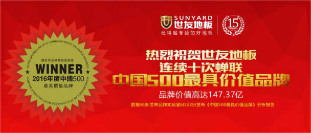 15年发展间,世友地板先后荣获南浔区质量奖、湖州市质量奖、浙江省质量奖、浙江省政府质量奖、全国质量先进个人奖、全国质量奖,行业品质大满贯。2006年开始,世友地板首次入选“中国500最具价值品牌”,至今蝉联10届。
