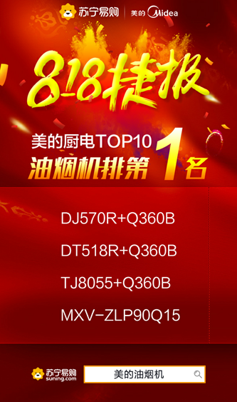 (原标题:苏宁易购818开门红,美的厨电开售1小时爆售1000万)