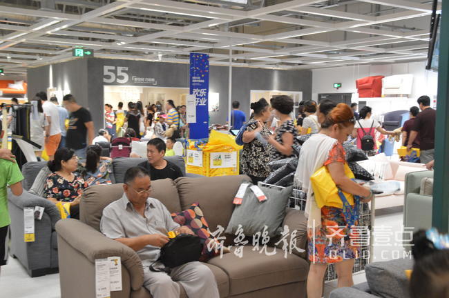 ?18日,位于二环西路张庄路口的济南宜家商场首次向公众开放,由于这是山东省第一家宜家商场,吸引了众多济南及周边城市市民来购物休闲,据统计当天进场高达3万人次,36000平米的商场很快就挤满了顾客。 等待进入宜家的市民排起长队。 王倩 摄虽是工作日,但并未挡住人们的购物热情。上午9点半左右,济南宜家商场外已排起了长龙。由于南侧的烟台路临时封闭,人和车只能绕到北侧进入,一楼的行人通道里队伍已有几百米长。对此,宜家方面在开放了两个停车场的同时,又开放了一个停车场,但进入停车场的道路依然被堵得水泄不通。商场内也是人山人海,大批市民和游客还在不断涌入。位于三楼的家具展间人气最高,沙发、椅子和床铺上已座无虚席,甚至有一大早赶来的市民睡在这些展间的家具上。上午10点,宜家餐厅内已经人满为患,不少年轻人表示,他们早上没吃饭,为的就是来吃宜家的意大利面,喝宜家的咖啡。而在宜家商场内部,游乐设施吸引了不少孩子驻足。在现场,不少残疾人都乘坐着统一的轮椅。据介绍,这是宜家专门为残疾人士准备的,为的就是让他们满足逛街的愿望。“早就听说济南要开个宜家,一大早就坐着高铁来了,没想到人这么挤。”从德州赶到济南的马先生说。据观察,来逛宜家的顾客多以家庭组团为主,一家三口十分常见,上至七十多岁的老人,下至婴儿都来凑热闹。由于宜家商场内设置了单行通道,顾客需要从入口逛完展间才能走到结账处。到10点半左右,商场内几乎堵得水泄不通,移动速度较慢。还未到饭点,三楼的餐厅已排起了长队,680个座位已远不能容纳就餐需求。记者亲身体验,排队拿餐盘足足花了半小时时间,结账也得耗时20分钟,这时就餐处已经坐满了人,不少顾客只能端盘站在一旁等候。据了解,当天宜家入场人次约有3万,新增会员数量2万人左右,平均客单价350元。宜家方面介绍,儿童产品、卧室家具和烹饪用具,以及宜家顾客餐厅和瑞典食品屋的美食较受欢迎,一种毛茸茸玩具——金毛狗成了最畅销的商品之一。 排队的顾客。于悦 摄宜家搅动济南家居市场格局,传统商场需要改造创新提到宜家,人们的第一印象就是家居。而在济南人心目中,北园大街一条街才是人们装房子、买家具的首选。宜家的开业,会不会对原有的格局造成冲击?两种不同模式,到底孰优孰劣?客流景象冰火两重天,宜家冲击力待检验离宜家不到10公里,便是济南传统的家居一条街。18日下午,北园大街沿线的几家家居卖场和店铺内的客流寥寥,与宜家形成了鲜明的对比。在欧亚达家居店内,几乎没有顾客,能看到的只有巡视商场的工作人员和各店的店员。在红星美凯龙和居然之家店,顾客也是稀稀拉拉。宜家开业后,会不会对济南传统的家居市场形成冲击?居然之家一名工作人员表示,影响肯定有,但宜家的冲击不是18日才有的,包括宜家在内的电商品牌,已经对家居实体店造成了影响。另外,宜家家居和大型商场的重合部分有限,毕竟居然之家、红星等还有门窗、地板、瓷砖的门店,这都是宜家所不具备的,而宜家出售的小物件,也不属于大型商场的经营范畴。最后,大型商场和宜家本质上属于不同的业态。大型商场是提供平台,为厂家和经销商提供平台,而宜家则是经营自己的产品。在红星美凯龙一家家具品牌店内,销售人员表示,这个夏天其实是他们生意较好的时段。因为附近白鹤建材市场面临拆迁,很多年轻人会选择来商场内消费。而他们品牌简约的设计、实惠的价格、清新的色调、更是让很多年轻人青睐。“不少人会说,这个和宜家的风格相近。”销售人员介绍,宜家会给他们带来什么样的影响,18日当天的参考意义不大,还是要等到9月、10月才能看出来。“那个时候,各大卖场会密集的搞活动促销,一年的销售业绩如何,在这几个月就能看的差不多了。”而在曲美家居、香港恒信家私店内,销售人员表示,他们的产品实木产品较多,与宜家的定位并不一致。“我们的客户大多是中年夫妇,用于改善型住房或养老住房,宜家对于他们的吸引力有限。”恒信一名工作人员表示。 商场里坐满了前来购物的顾客。 高寒 摄模式不同各有利弊,适应市场尚需时日宜家和本地家装市场出现竞争,济南其实不是第一个。作为瑞典家居设计、生产、销售巨头,济南已经是宜家在国内登陆的第24个城市。长期以来,在无锡、南通、大连等二三线城市,宜家的开业并未对当地传统家居 产生太大冲击,其独霸一方的局面也未出现。尽管宜家负责人表示,在济南宜家内有9000个系列的产品,可以为消费者提供更多选择。但对宜家来说,其鲜明的设计特点,也成了其“软肋”之一。相比其他大型家居商场,宜家的选择还是少了一些。曾在东亚家居供职过的温女士就表示,在家具方面,宜家的受众可能会比较单一。但对于大型商场来说,范围更大。温女士还介绍,宜家的统一采购、统一销售的模式,需要的成本无疑比居然之家、红星美凯龙这样只提供场地、物业服务的模式要高。在宜家商场内,设有一个巨大的仓库和提货区,而在传统大型商场内部,则只有展示区,各个商铺的商品大都是定做后由工厂直接运往消费者家中,这样一来,经销商也省去了一大笔仓库的成本。将生产者、销售者的角色合二为一,国内并非没有这样的先例。无论是国外的百安居还是国内的东方家园,走的都是宜家“重资产”的路