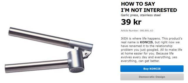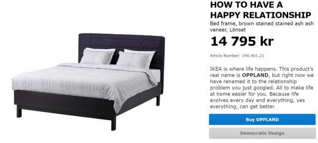 宜家玩起营销来也是一套一套的,比如他们曾经给产品改名,产品介绍的文案也下另类的工夫,先看看以前他们官网上修改的文案: