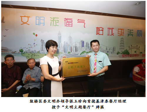 本次活动由中共福州市委文明办指导,中共鼓楼区委文明办和百胜餐饮(福州)有限公司主办,东街街道协办。活动中,肯德基津泰餐厅被授予“文明主题餐厅”牌匾。