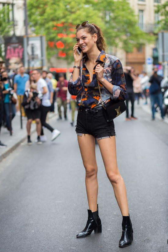 短靴搭配上性感的热裤毫无违和感,分分中穿出大长腿的既视感,高腰款的短裤尤为推荐,这种穿法在时尚圈最受欢迎。