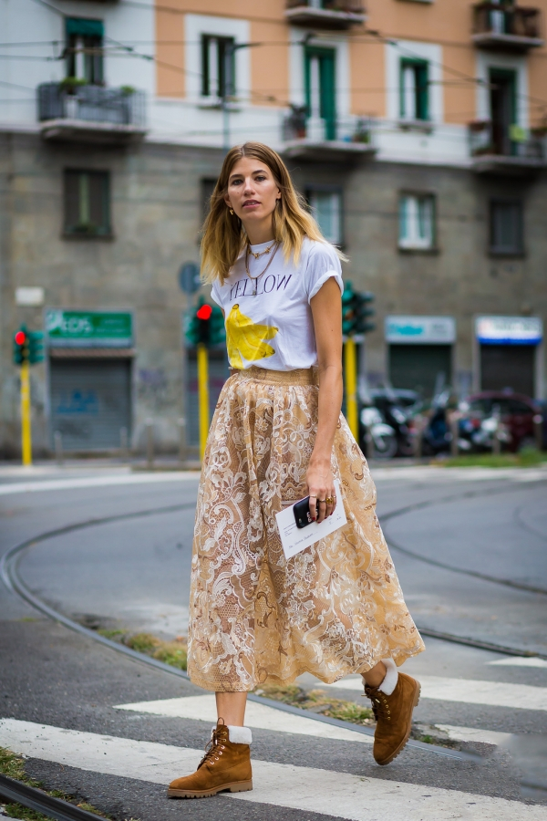 优雅的半裙让我们常常联想到温婉的淑女形象,一双靴子着实打破了这样的画风,淑女?只是一种假象,酷酷的靴子才是老娘的本色出演。