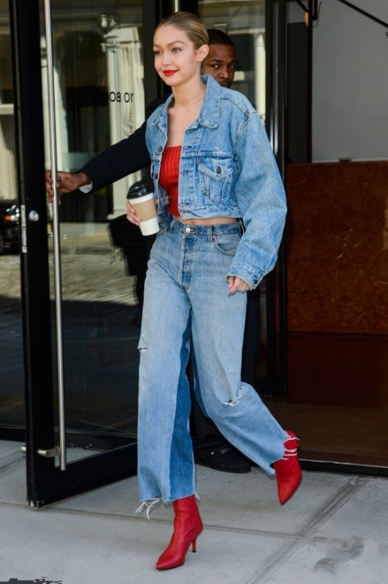 当红超模姐妹花“肯德基”姐妹(肯达尔-詹娜 & 吉吉-哈迪德)当然不能错过这场时尚热潮,在不少街拍造型中我们都可以看到她们身着短打清凉上装下搭短靴的造型: