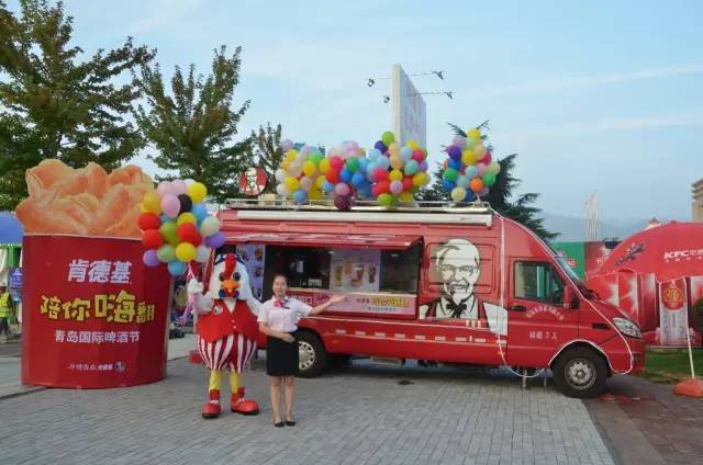 肯德基深黯你心将全国第二辆,山东首辆移动餐车开进了啤酒城与你一起狂欢,逛啤酒节可以特方便的吃烤翅喝啤酒,简直不要太惬意。