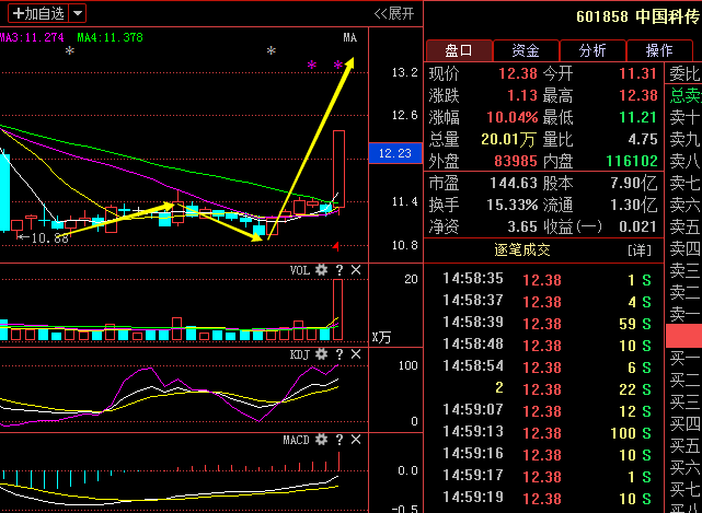 今天雨偌还是给大家带来一支黑马股,下面来看一下该股目前的走势情况:中国科传(601858)