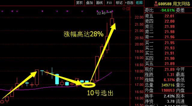 其实选股就是这么简单,选热门板块的龙头股,再结合上升回踩,能够选出的牛股有很多。如【用友网络】是10号在专栏选出,涨幅也不低了。