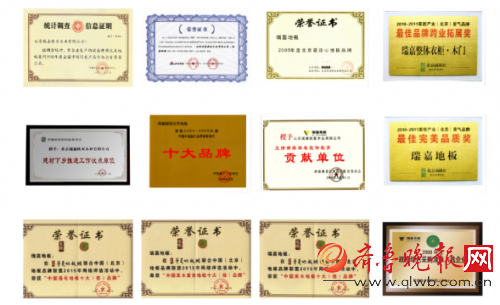 从1999年瑞嘉入主中国地板业以来,一直是中国畅销品牌;2014年,瑞嘉地板被评为“2014年度全国地板行业产品质量和售后服务 双承诺品牌”。瑞嘉全年签约中央电视台CCTV-13新闻频道、CCTV-2财经频道助力2014市场腾飞!;2015年,瑞嘉 荣获“中国强化地板十大品牌”、“中国实木地板十大品牌”、“中国实木复合地板十大品牌”;2016年 ,瑞嘉荣获“中国健康衣柜十大品牌”、“中国健康地板十大品牌”、“中国地板十佳品牌(强化类)”瑞嘉人也十分珍惜来之不易的荣誉,力争做到更好,做得最好,瑞嘉人制作荣誉下激励前行。