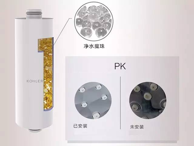 而 Kohler 随心雨花洒净水器高科技滤芯,采用被称为“水黄金”的,KDF55高纯度铜锌合金作为滤芯内的主要过滤材质。。。 Kohler 随心雨花洒净水器高科技滤芯