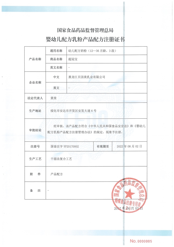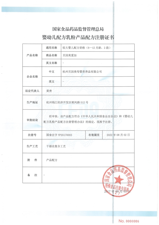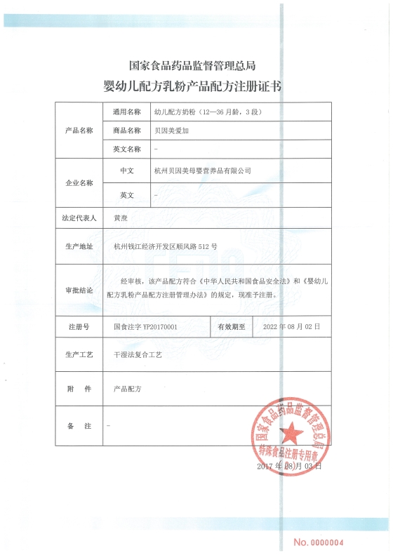 \u00A0\u00A0\u00A0\u00A0\u00A0\u00A0\u00A0\u00A08月15日,国家食品药品监督管理总局发布第一批婴幼儿配方乳粉产品配方注册证书待领信息,涉及贝因美等多家企业的89个配方。同日,国家食药监总局又批准伊利、味全等6家企业共21个婴幼儿乳粉产品配方注册,为第三批。这与第一批获批仅隔12天。