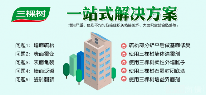推出天彩石、真石漆、装饰型质感涂漆、弹性平涂、刚性平涂、地坪、水性轻防腐以及内墙平涂等多种城市焕新外(内)墙系列。针对各种各样的旧墙问题,提供一站式的解决方案。为每座城市量体裁衣,解决城市旧墙翻新问题。