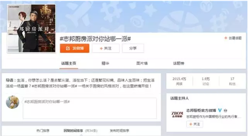 志邦经过多年探索,其互联网基因在本次传播战役中展露无遗,夏日狂欢约惠的成功,是精心设计下的必然结果。首先是讨论话题#志邦厨房派对你站哪一派#,既成功挖掘了消费者购买橱柜产品的深层次洞察,又完美契合了企业的品牌价值观“专注厨房,更懂生活”,使每一位参与到传播闭环中的受众,在阅读话题时了解、认可了志邦的品牌理念,而以话题讨论作为主要传播形式,让每个人都有机会发声,更是牢牢把握住了受众才是互联网传播核心这一要点。