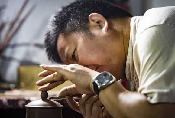重庆荣昌区政府高度重视对国家级非物质文化遗产“荣昌(安陶)陶”的挽救性保护,出资恢复性修建还原安富古镇的原貌,一条以土陶元素为主的安富老街换发了青春,吸引了大量游客来此观光。 荣陶第11代传人向新华大师。他的陶器作品多次在国内获大奖。 荣陶雕刻大师钟鸣先生。他的陶器作品在联合国教科文组织获国际大奖。 荣陶朱砂釉工艺大师肖祥洪先生。他的朱砂釉陶器作品在国内享有盛名,其作品也多次获大奖。 荣陶拉胚大师刁显超先生。他制作的陶器圆润饱满,栩栩如生,其作品在国内大型陶器展上获大奖。 向新华大师的陶器代表作。 钟鸣大师的陶器代表作。 肖祥洪大师的陶器代表作。 刁显超大师的陶器代表作。 在安富刘家拱桥保留完好的夏兴古窑,始建于清乾隆年间(公元1802年),200年窑火不断。直到本世纪初才正式闭窑,现在作为文物给以保护。 荣陶历来是以纯手工拉胚(上釉)窑烧而著名,其独特的陶器制作技艺被列入国家级非物质文化遗产。因为是纯手工技术,目前多表现以家庭为单位生产,生产环节原始,技艺一般家传。 荣陶至今还保留一些特别传统的生产环节,比如依山而建的土窑地势较高,陶胚进窑要人工搬运,这需要搬运工练就一身高超的平衡能力。您看这位师傅肩扛3米长150公分宽的木板,负重几十公斤,在陡峭的梯坎上健步如飞,不得不让人萧然起敬。 您看这位师傅是这样和泥的,犹如一个白案大厨。 陶胚雕花刻字是个细则的手工活。 烧窑才是个技术活,陶器品质的好坏都要看烧窑师傅的水平了。这门技术一般也都是祖传继承的。 您看这拉胚的活不仅仅是个技术活,还是一个体力活。 荣陶技艺传承千年,靠的就是制陶人代代相传。这是刁显超大师在向儿子刁扬洋传受绝技。 这是刁显超大师的妻子周玉芬在陶胚上粘装壶把,这一家三口都是荣陶的传人。 为了弘扬传统文化,培养具有高文化知识的新一代荣陶传人,政府在安富新建了一所现代化的陶艺技术学院。 中国荣陶这个中国非物质文化遗产得到了系统性保护,确保了荣陶后续有人。中国荣陶凤凰涅槃,未来一片光明。摄影\\撰文:夏首安