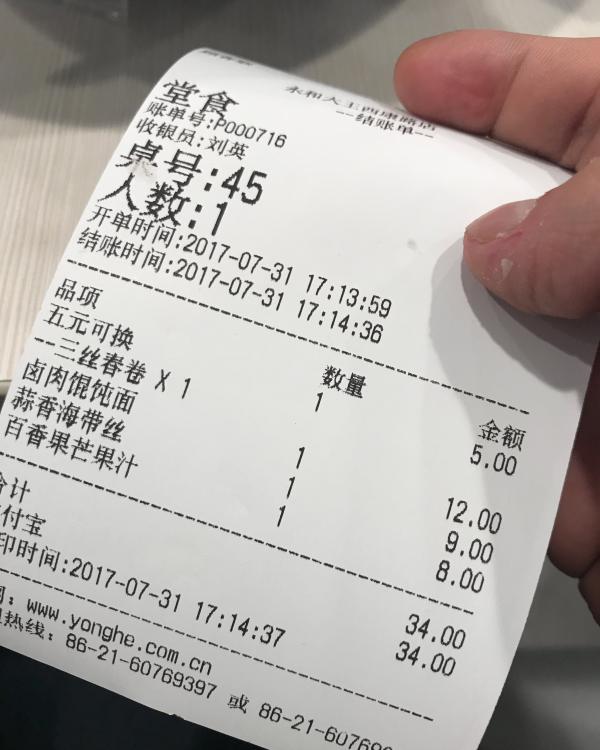 8月2日,消费者苏先生向澎湃新闻(www.thepaper.cn)记者反映,7月31日傍晚5时许,因为上晚班,他就近走进西康路“永和大王”,点了价值34元的餐点,其中包括一份卤肉馄饨面。