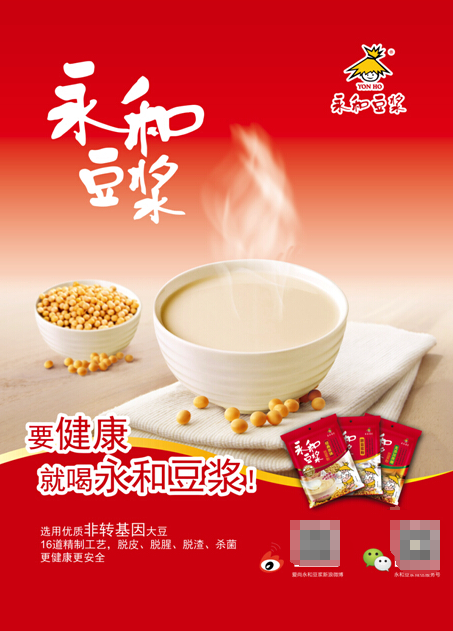 同时作为中国传统食品企业,永和豆浆积极践行健康发展理念,从其“要健康,就喝永和豆浆”的slogan中不难看出,永和豆浆坚持履行做健康食品的承诺!