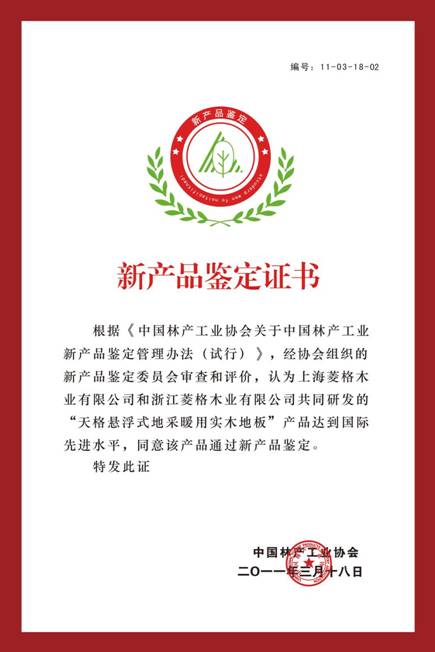 国家林业局数十位顶尖地板专家组成的鉴定组一致认定:天格纯实木地热地板已经达到国际领先水平