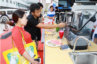??本次巡展更是邀请了星级大厨现场运用美的生活电器的产品烹饪美食。其中美的钢铁侠破壁机制作的奶昔、冰沙、米糊、豆浆等多种饮品,让现场试吃的观众赞不绝口。
