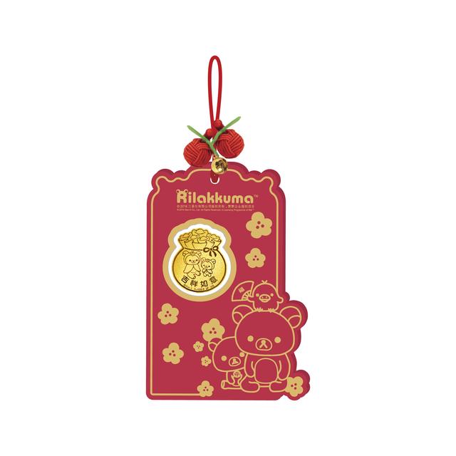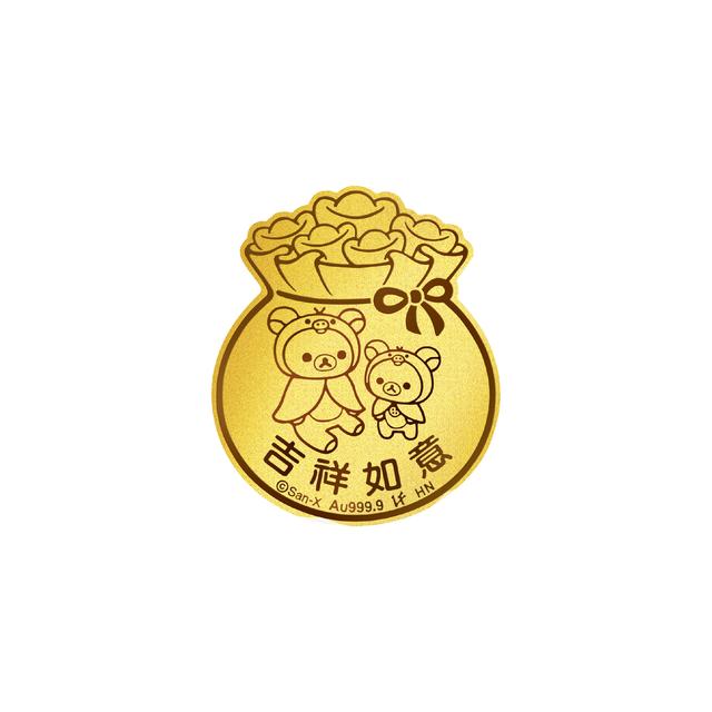 以「福袋」的造型匠心独运地打造出的「轻松小熊」足金金币,「福袋」内满载金元宝,寓意财源广进、福气满溢。矜贵的足金上铸有轻松小熊及小白熊的图案,两者皆换上鸡年的小鸡斗篷,祝愿「吉祥如意」。