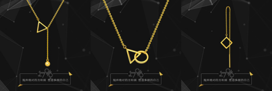 22k金全新材质的启用,不仅继承了24K足金的鲜艳色彩及不易变色的稳定属性,又兼具了18K金高硬度,易加工的优点,款式设计上充分考虑年轻消费者市场需要。